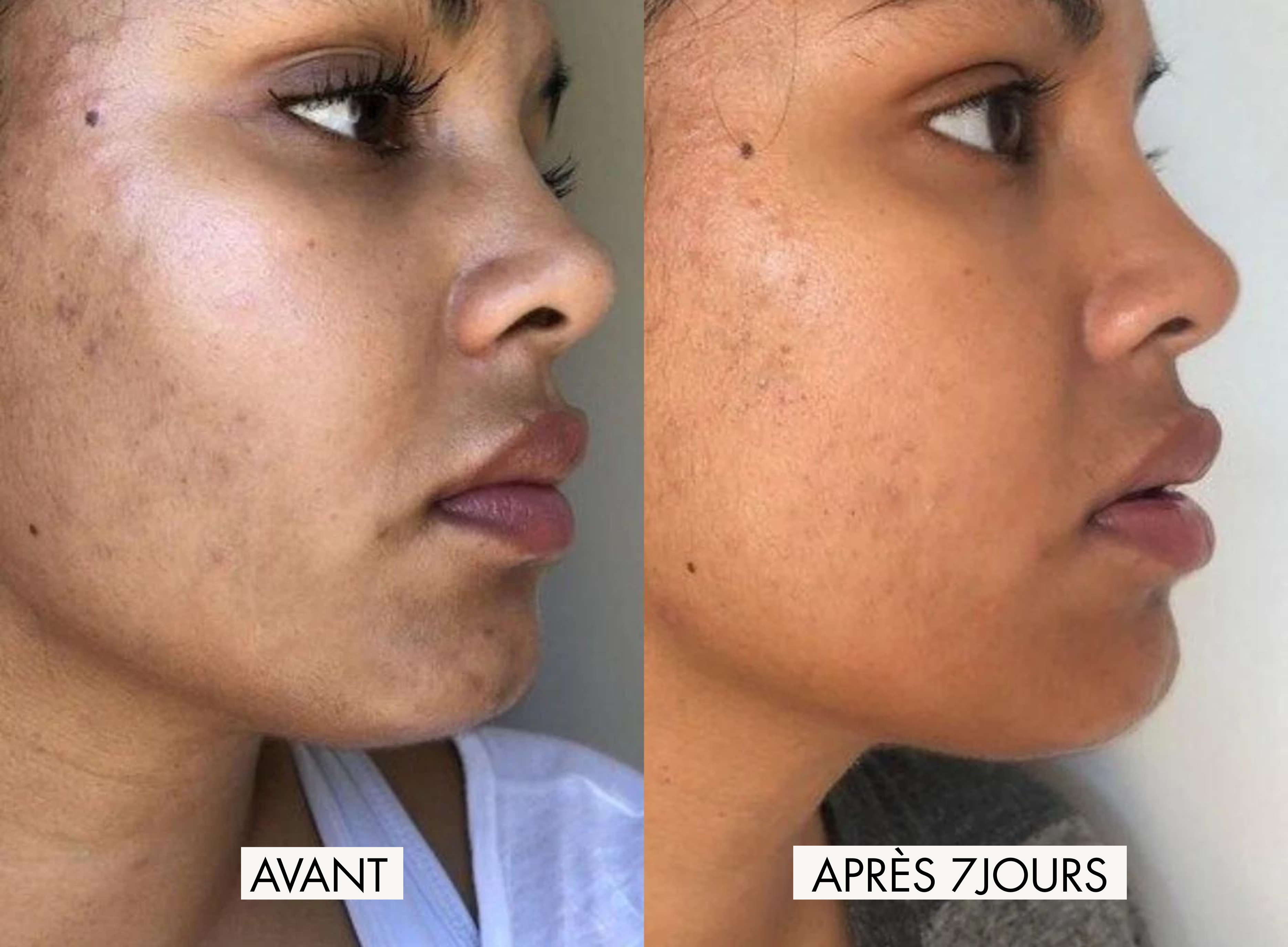 Les premiers effets sont visibles dès les premières applications : peau plus lisse, plus lumineuse et un grain de peau affiné. Les résultats s’intensifient après 1 à 2 semaines d’usage régulier.